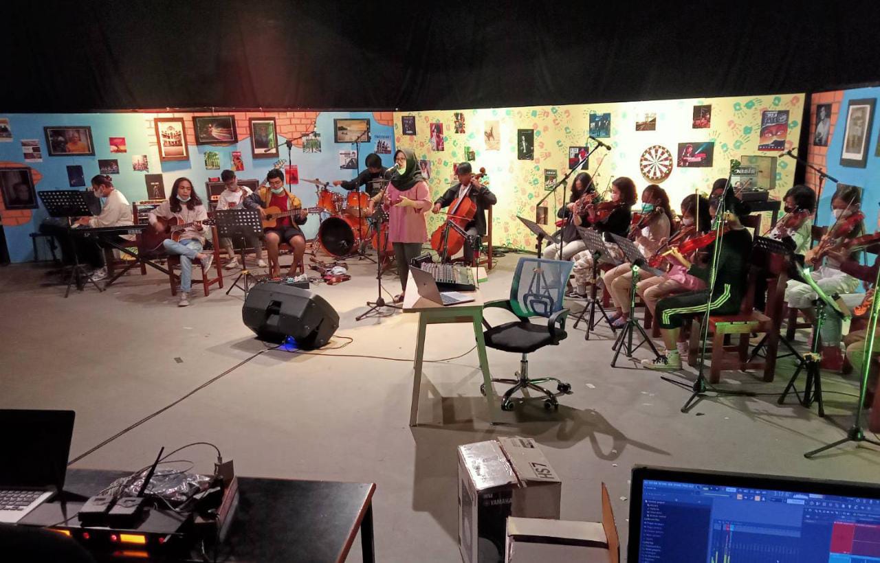 Guru-guru SD Sanjaya Tritis Yogyakarta mengikuti Training Content Creator untuk Pendidikan di Studio Audio Visual Puskat Yogyakarta. Masa pandemi yang masih ...